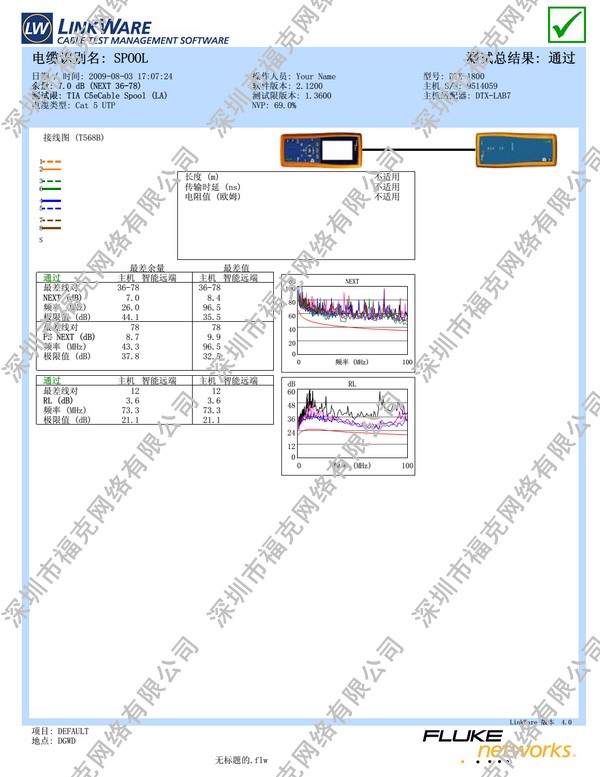 【DTX-LABA/MN】DTX-1800 305米整箱线测试适配器测试报告: